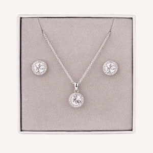 DG0047- Cubic Zirconia Infinity Teardrop Pendant Necklace & Earrings Boxed Set- D&X London