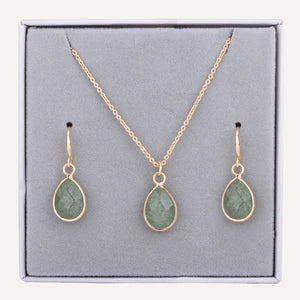 DG0047- Green Crystal Teardrop Pendant Necklace & Earrings Boxed Set- D&X London