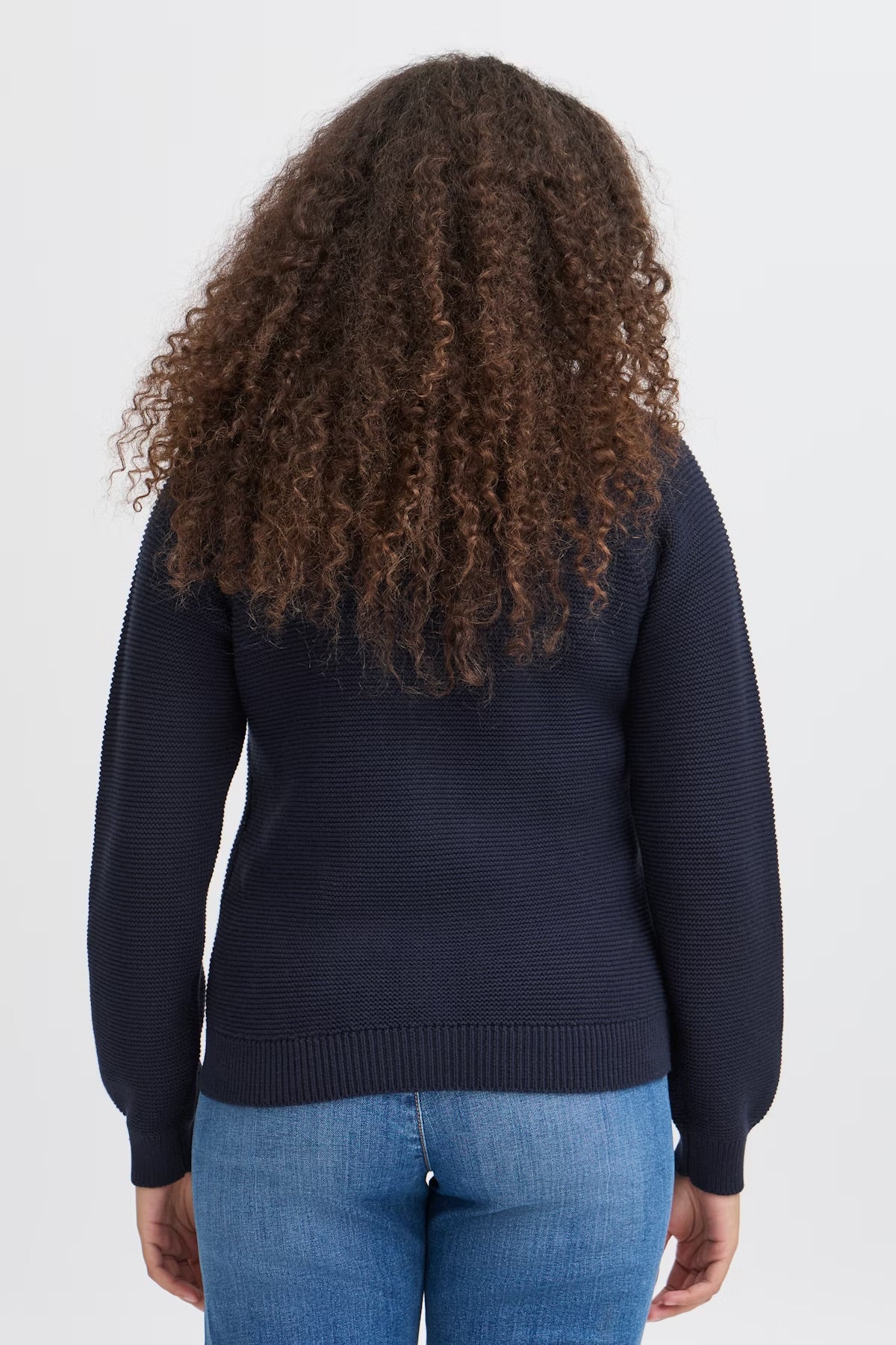 5554- Cotton Knitted Button Up Cardigan- Navy- Fransa