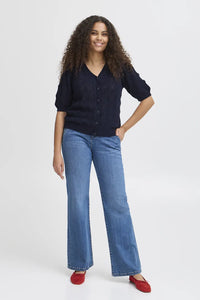 5553- Knitted Short Sleeve Cardigan- Navy- Fransa