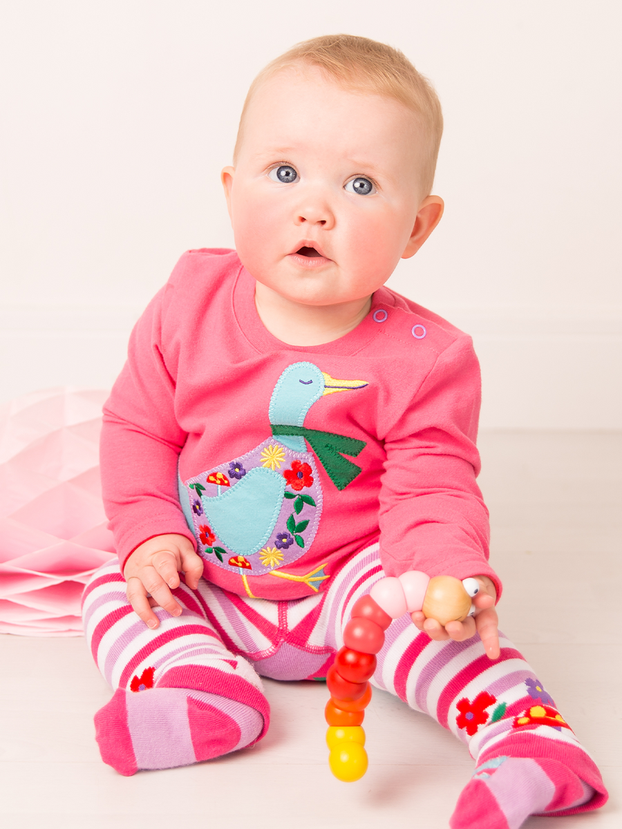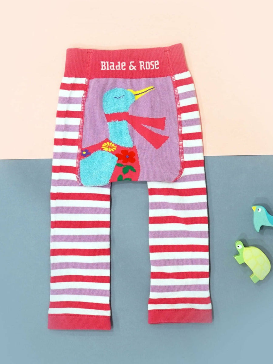 The leggings come in a lovely lilac, pink and white stripe, with a fluffy Casey the Goose design on the bottom - perfect for a wander.