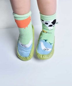 Our moccasins are perfect as pram shoes, cosy slippers for home or to protect little toes at nursery or soft play. They are made from a cotton and polyester mix with added elastane to give stretch and have a non-slip PU sole and are machine washable.