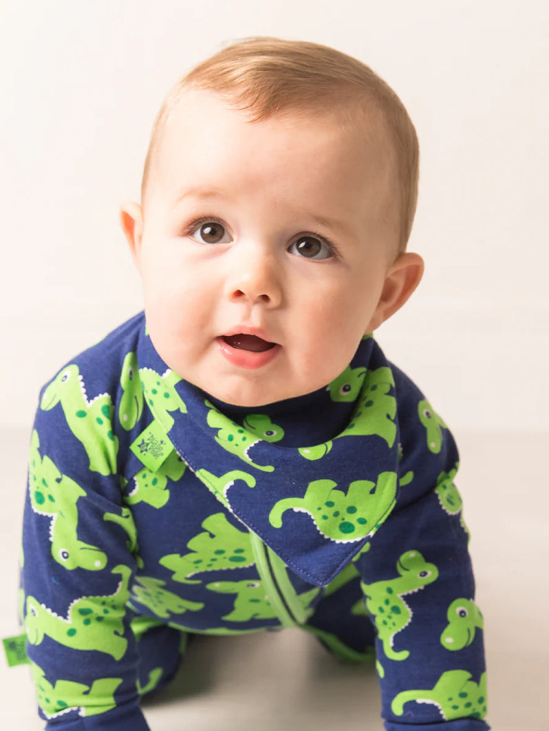 Our bibs have 2 colourful poppers to allow you to select the right size for your child. They come with a fuzzy soft fleece lining and perfectly match our Maple the Dino Romper!