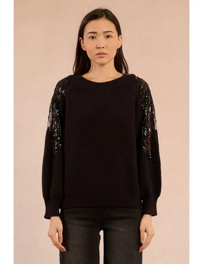 This open-work jumper from Molly Bracken is the perfect way to elevate any outfit. The open shoulder is created using a mesh material that is embellished with beading. The jumper also features a round neck