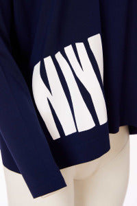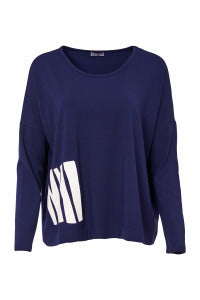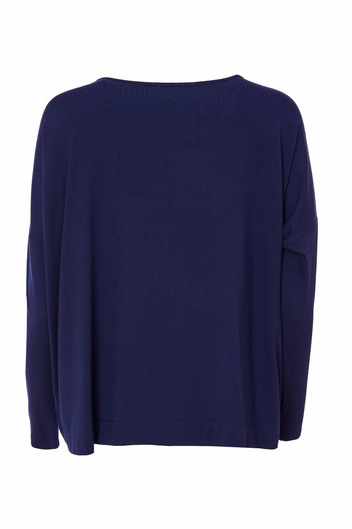 25286 - Round-Neck Top with Side Placement Print - French Blue - Naya