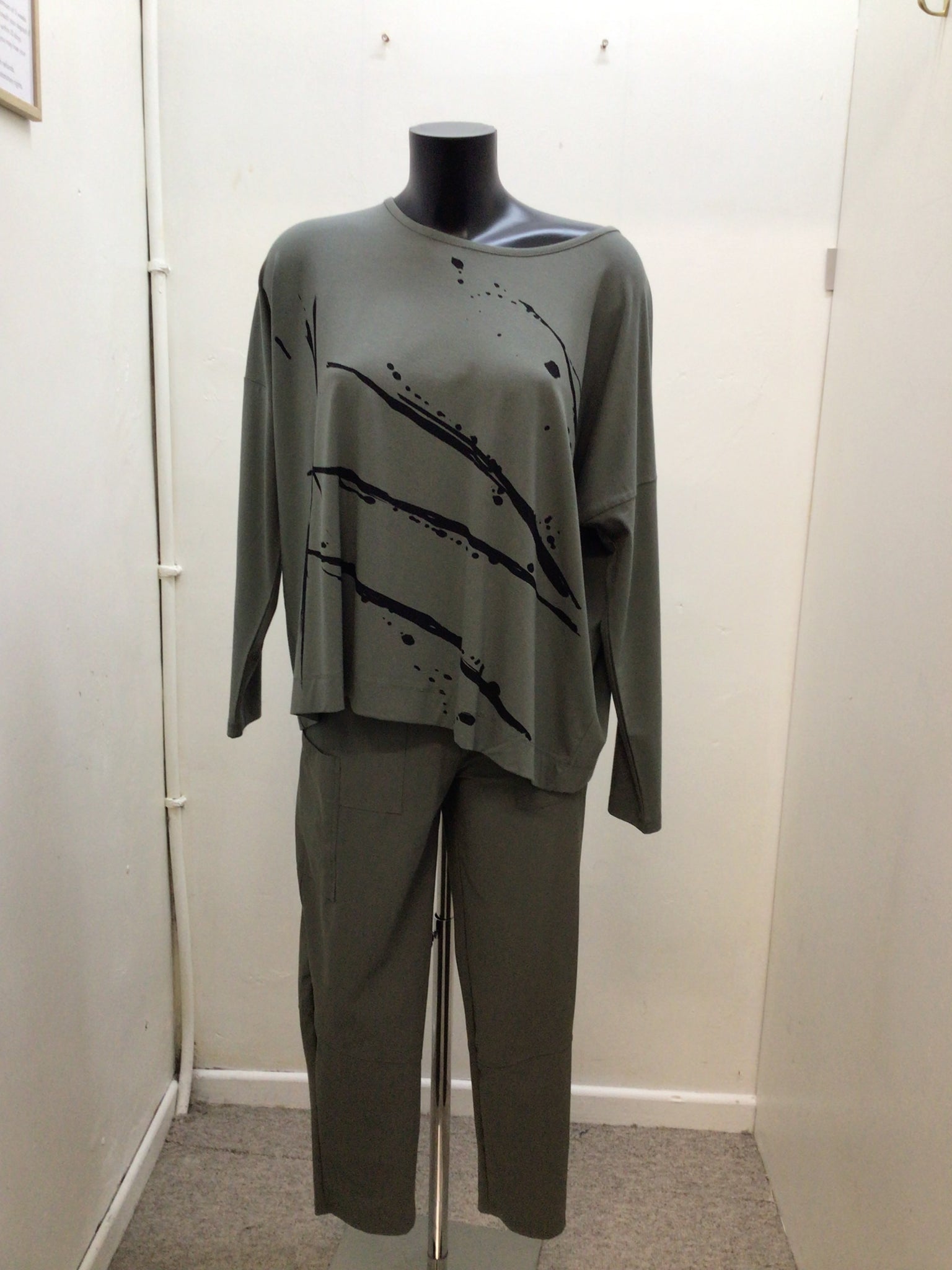 25288 - Brush Stroke Print Top - Army Green - Naya