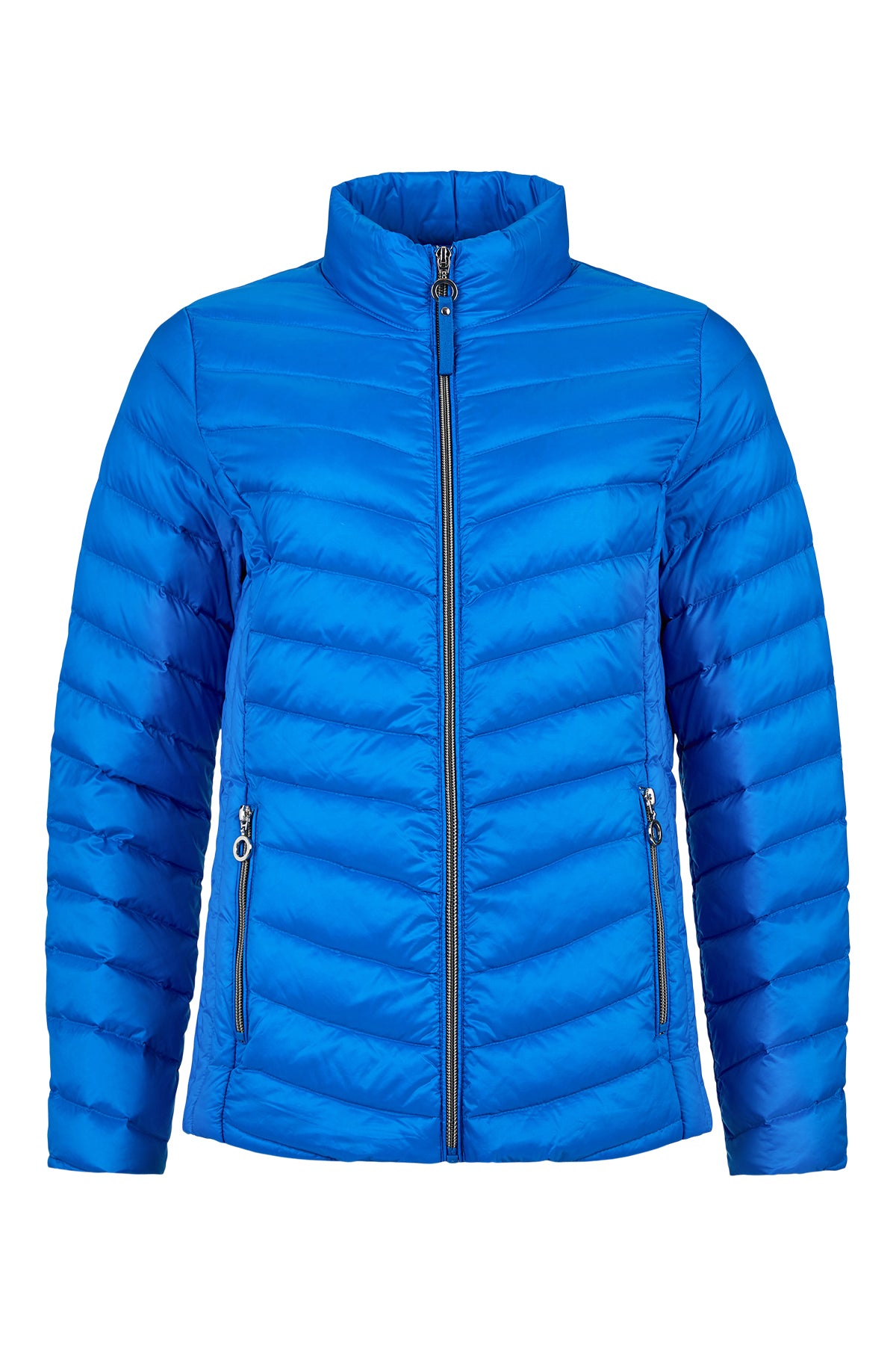 - Close fitting down filled collar