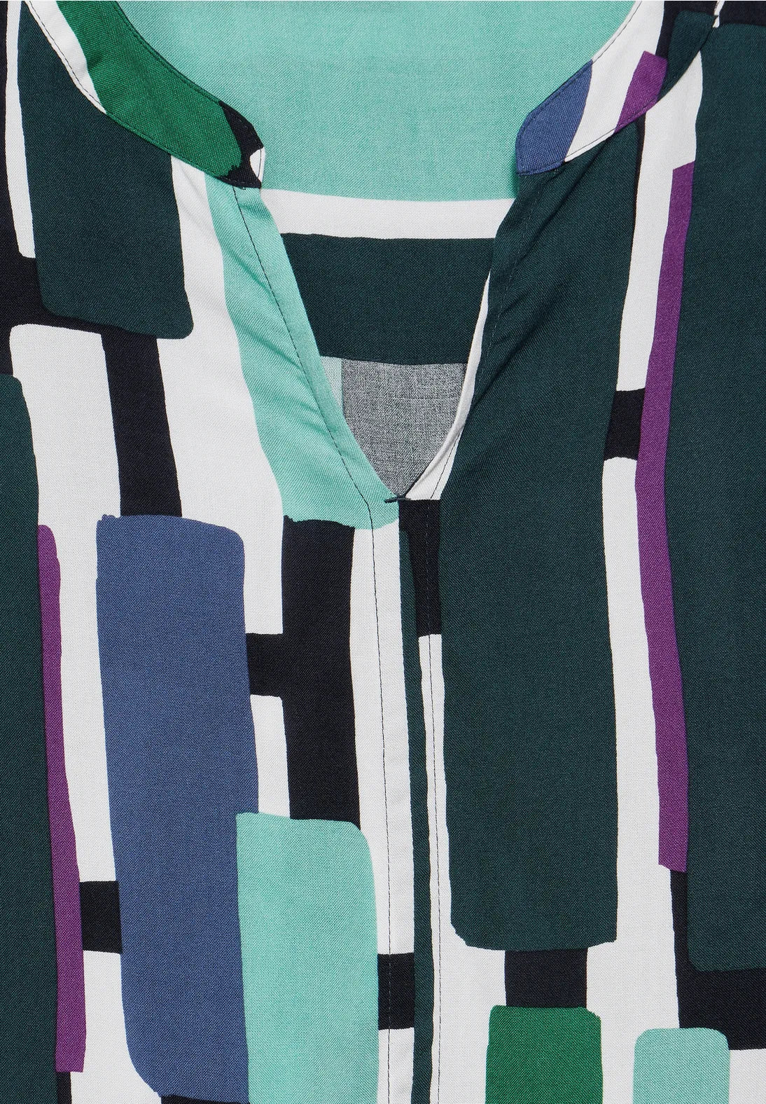 The blouse with lettering detail from CECIL for women is a real eye-catcher. The printed blouse impresses with a slotted round neckline and the lettering detail on the shoulder. Short sleeve and the soft viscose make it particularly comfortable.