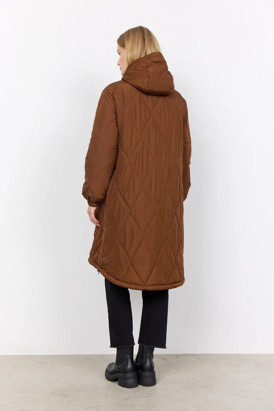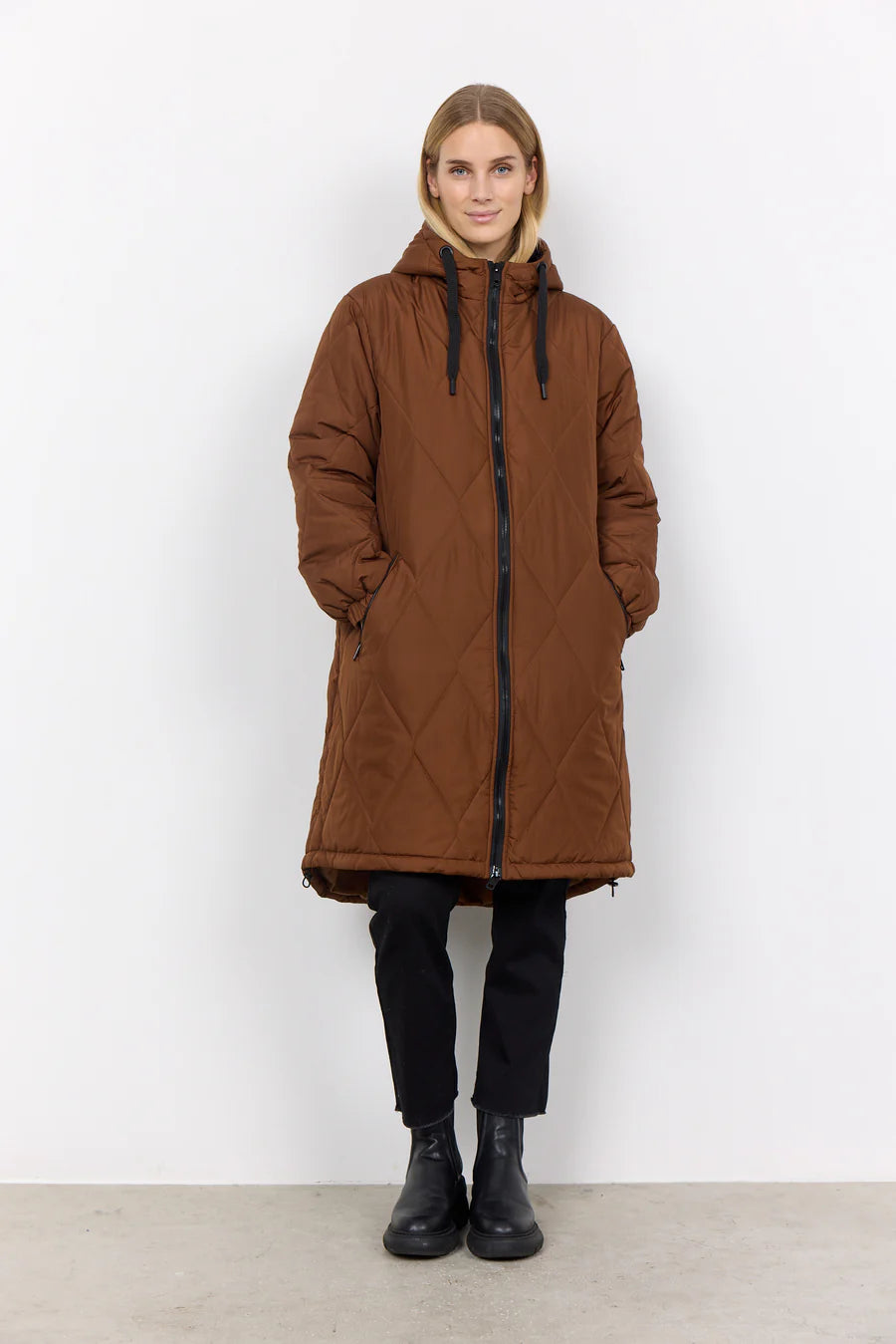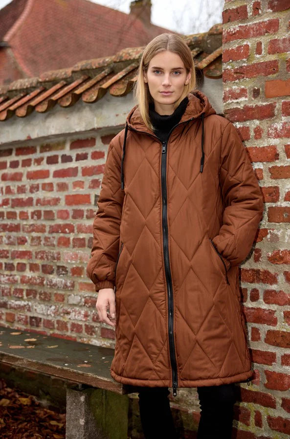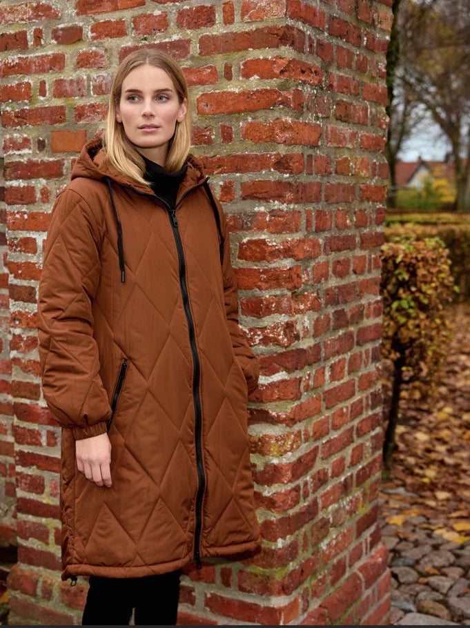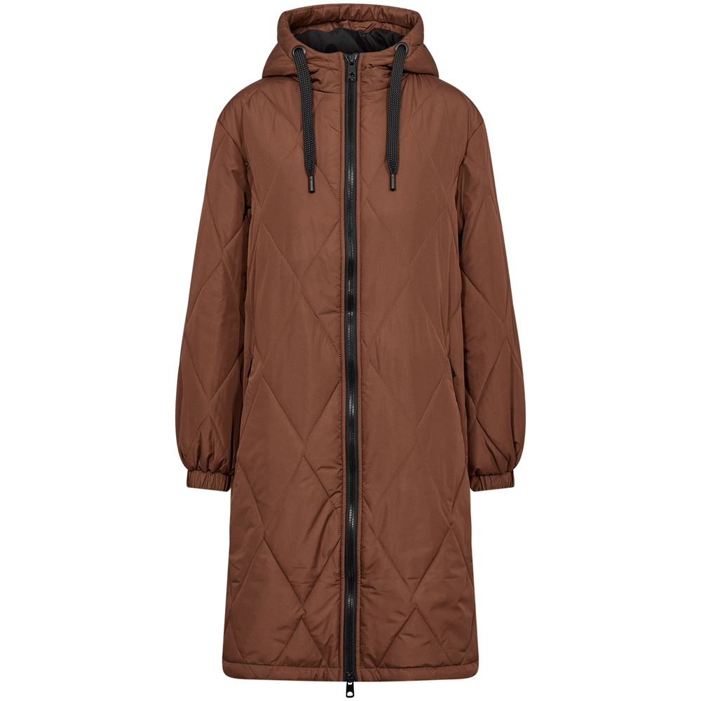 SC-FENYA 65 is a long quilted coat crafted from 100% polyester. It features a full-zip front closure, a generous hood with adjustable drawstrings, and elasticated cuffs to enhance warmth and comfort. This versatile jacket is a saviour as a transitional jacket.