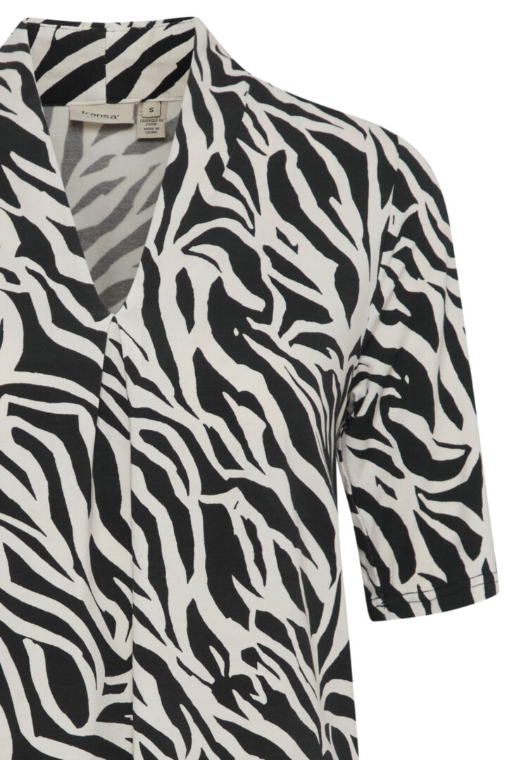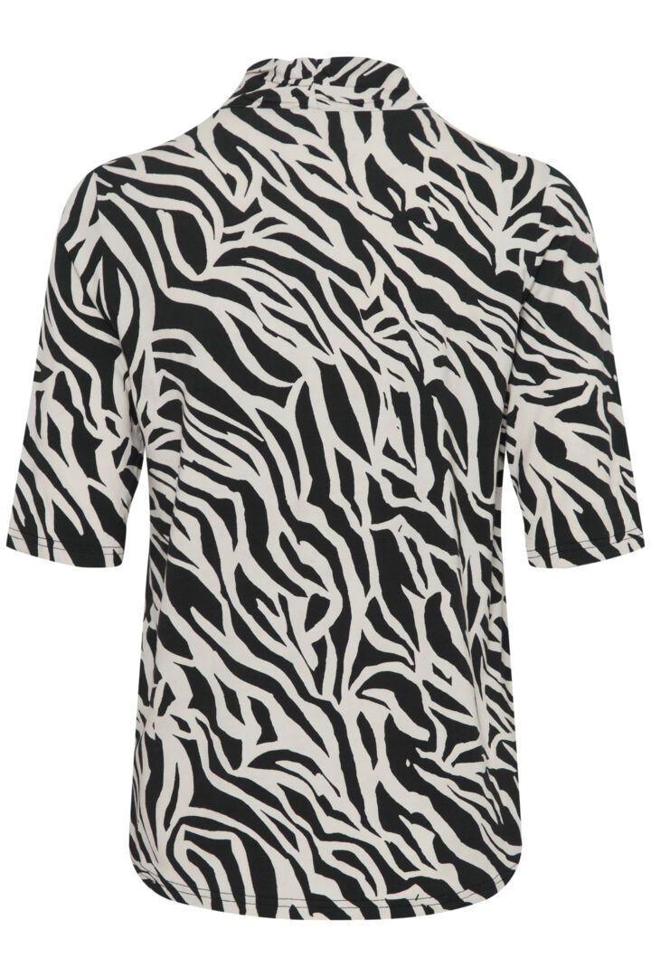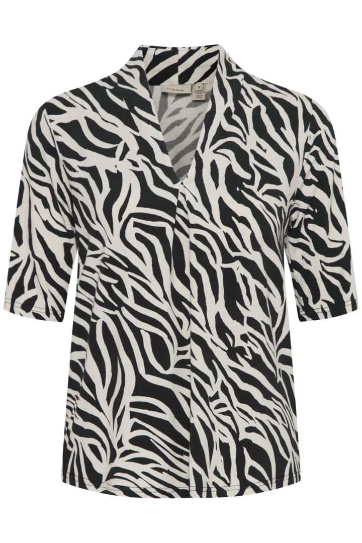 4157- Abstract Print Short Sleeve Top- Black/White- Fransa