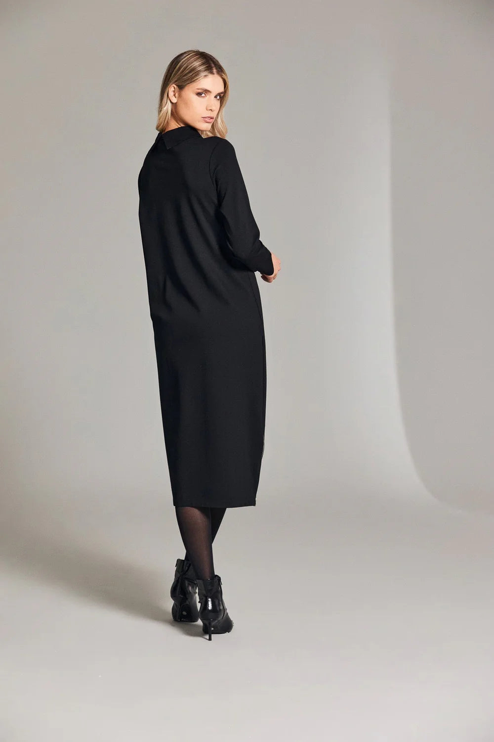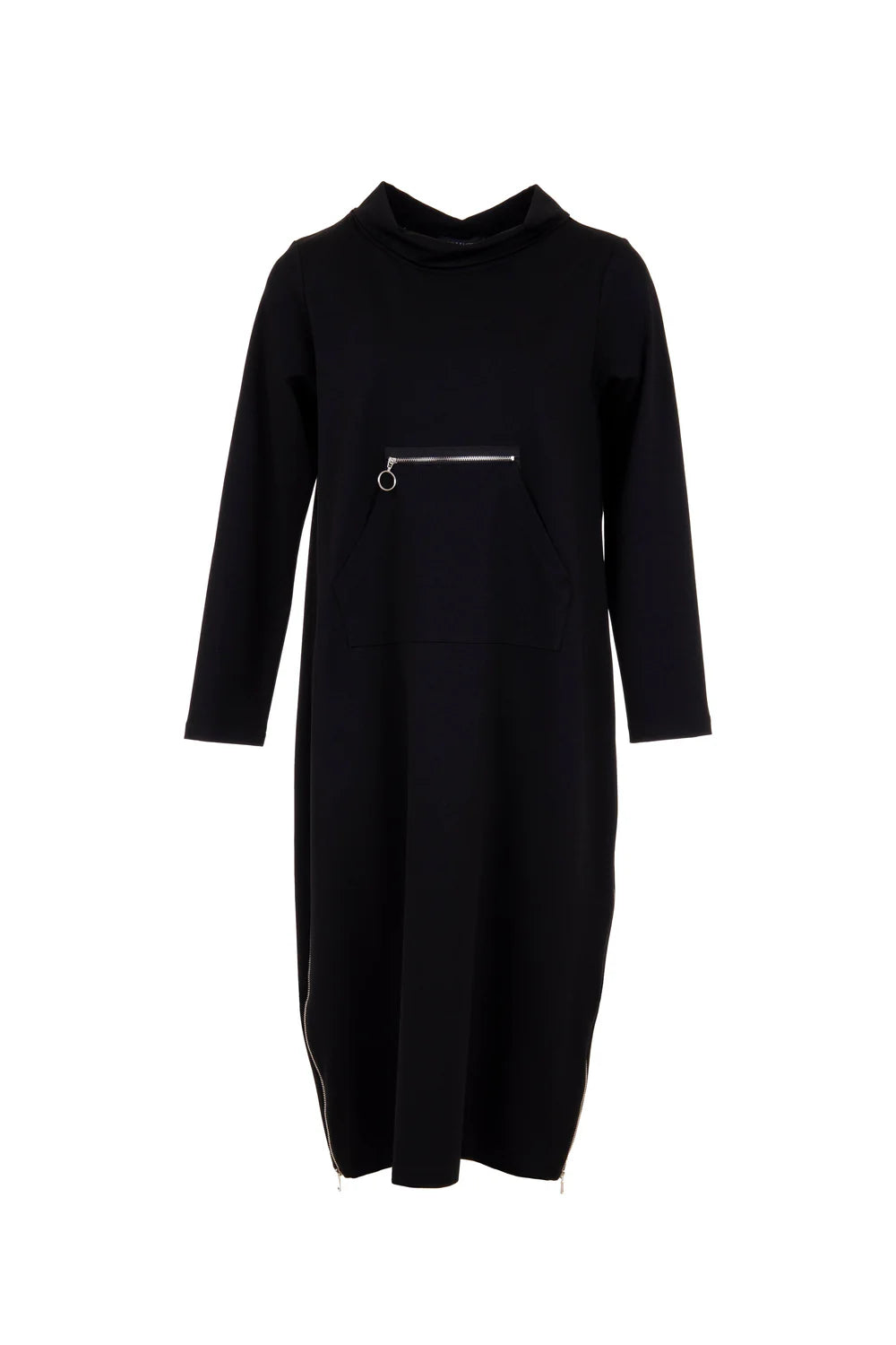 PERUZZI dress with raised neckline, side zip detail and front pocket with zip detail