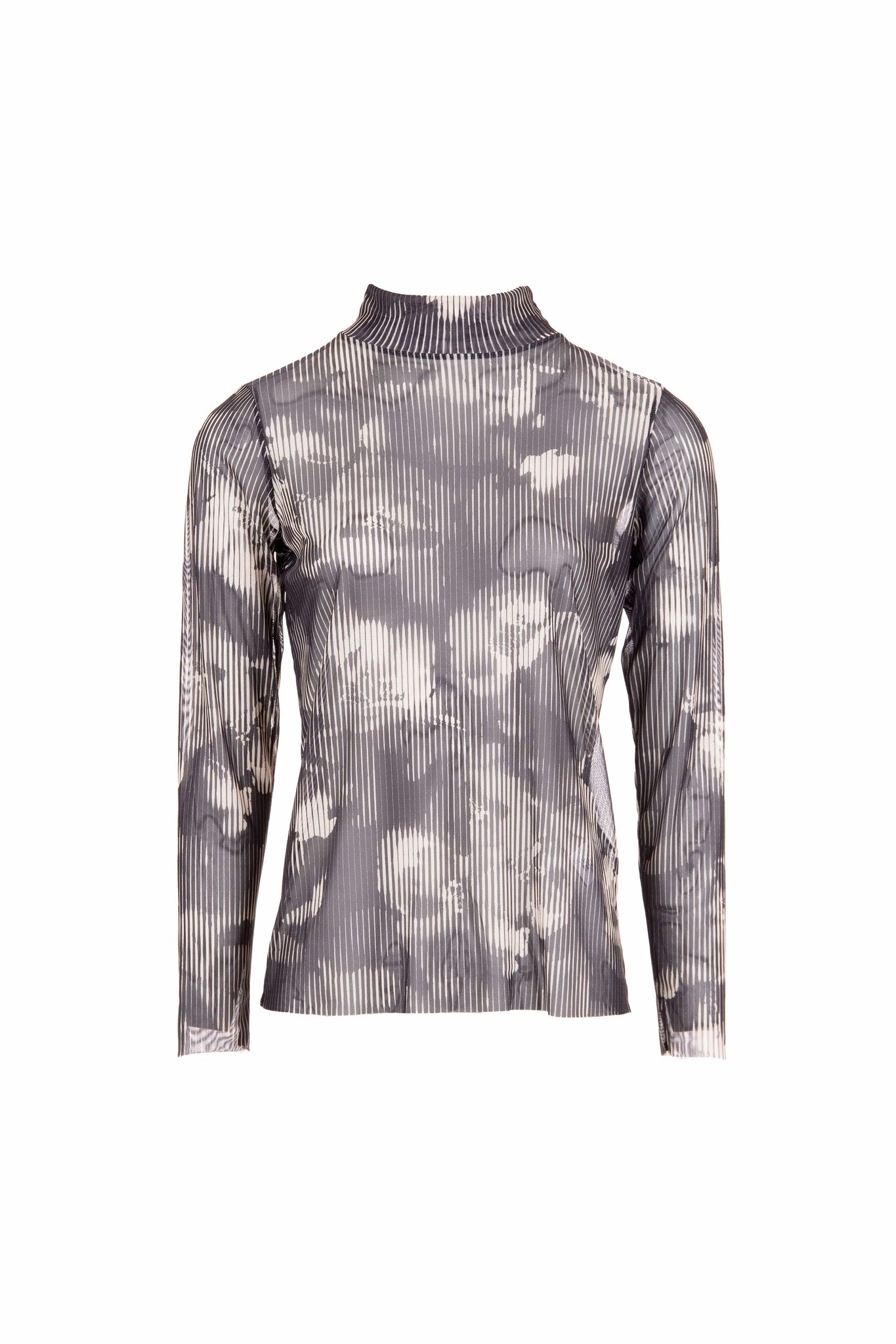 W24206- High Neck Mesh Print Top- Black/Sand- Peruzzi