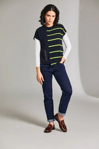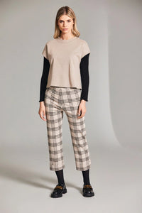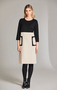 W24154- Straight Patch Pocket 3/4 Sleeve Dress- Ecru/Black- Peruzzi
