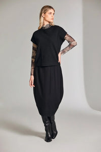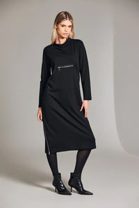 W24200- High Neck Raised Jacquard Panel Dress- Black- Peruzzi