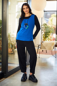 24184 - Cord wide leg trouser with front patch pocket- Black- Naya