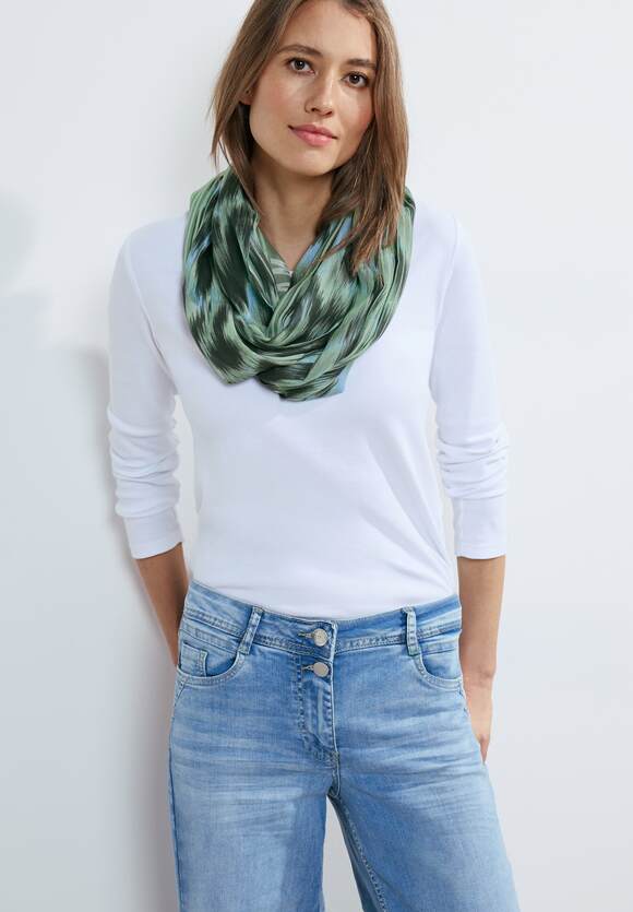 The print scarf from CECIL is a fashionable loop with a wording design. It is made of comfortable modal material. The loop is not only stylish, but also comfortable to wear and gives your outfit a special accent.