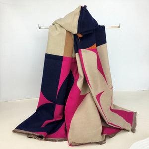 235 -113 - Abstract Print Scarf - Navy & Hot Pink
