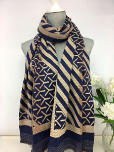 235- Stripe Scarf - Navy
