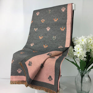 224-201-Bee Print Winter Scarf- Grey & Pink