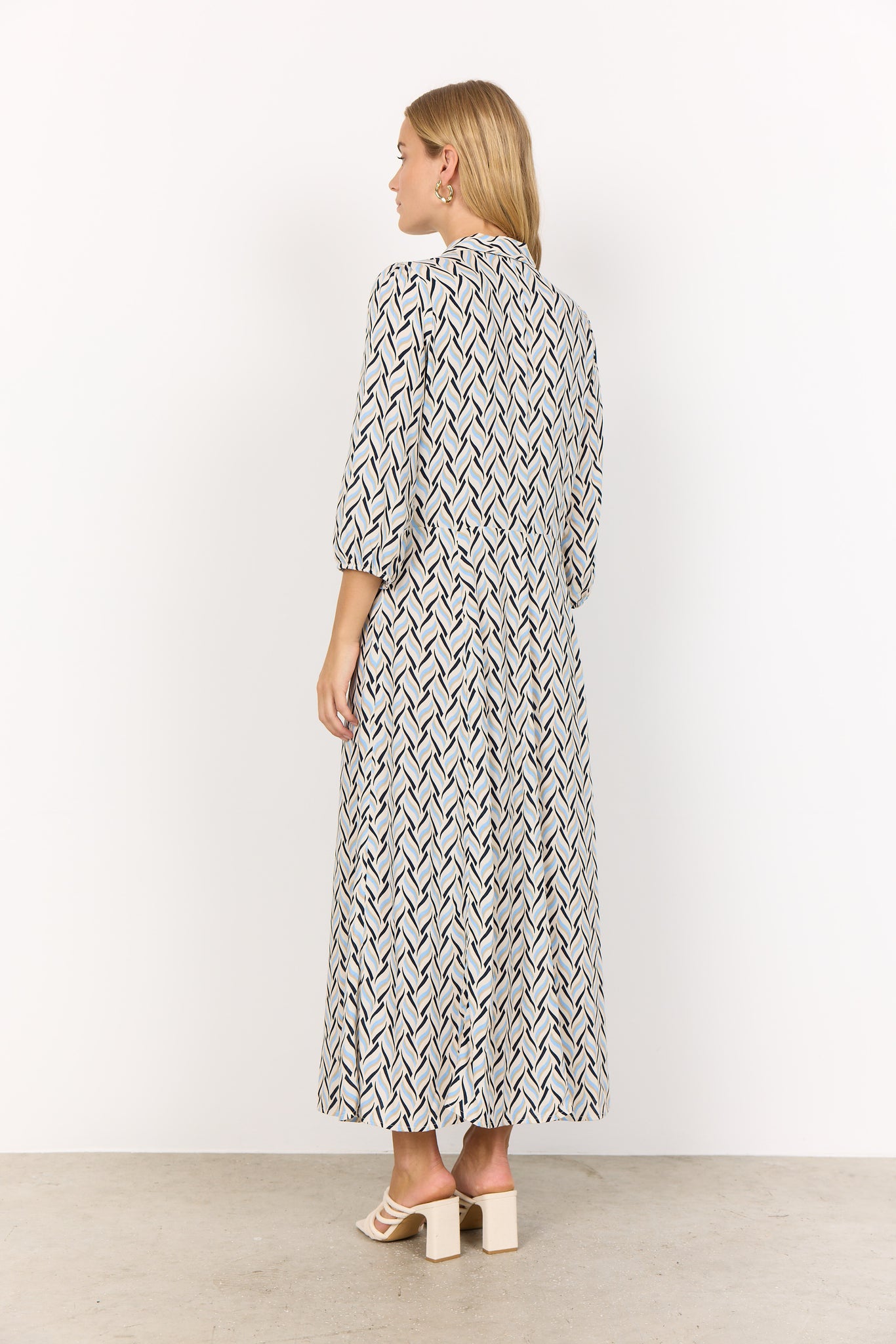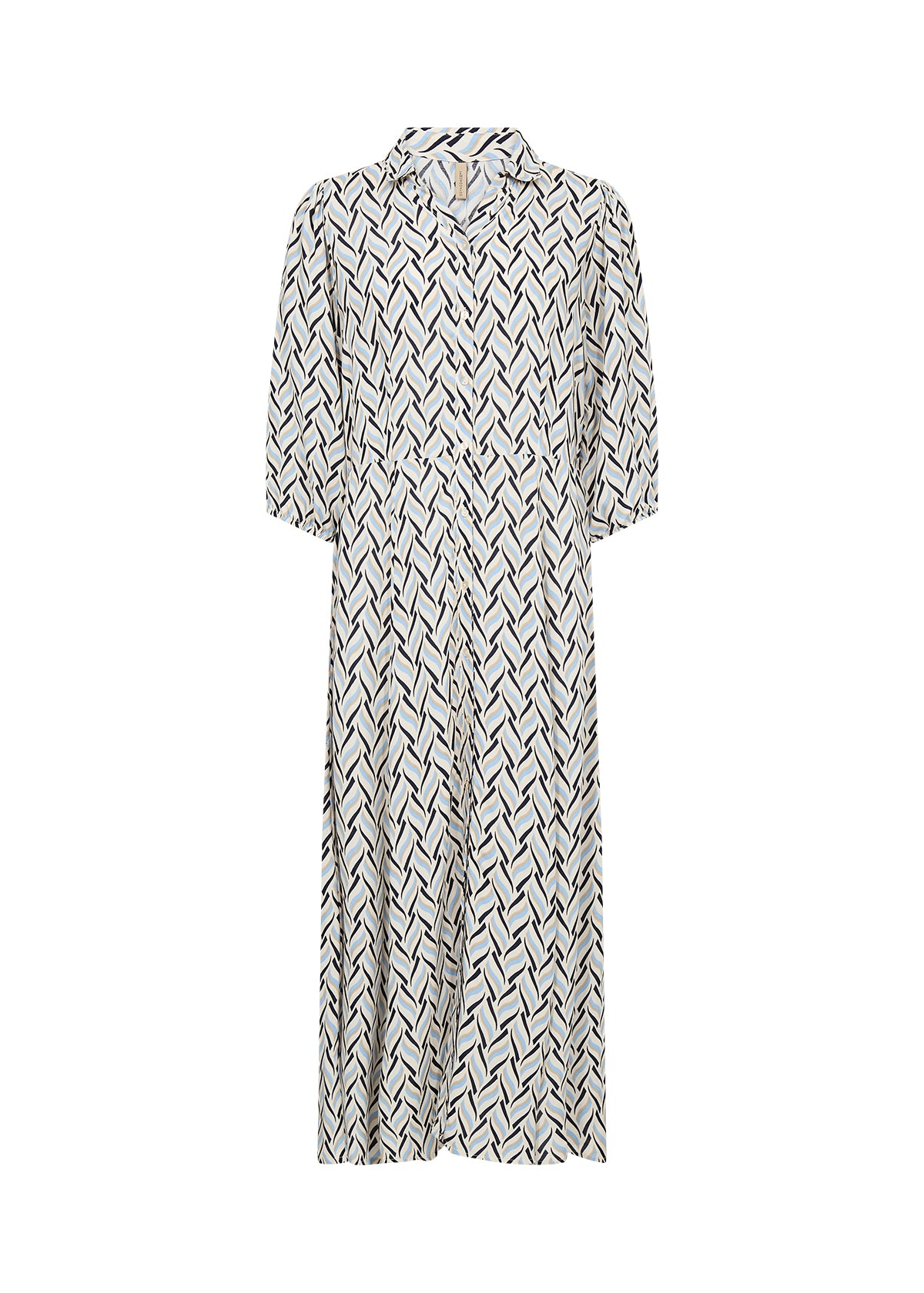 SC-PENNY 2 is a stylish long shirt Dress crafted from 100% ECOVERO Viscose. This dress features a collared neckline, mid-length sleeves, and a geometric print. Pair it with sandals for a relaxed daytime look or dress it up with heels and statement jewelry for an evening out.