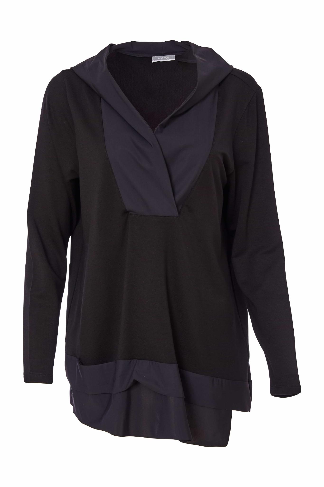 25134 - Hooded Top with Contrast Wrap Neck -French Blue- Naya