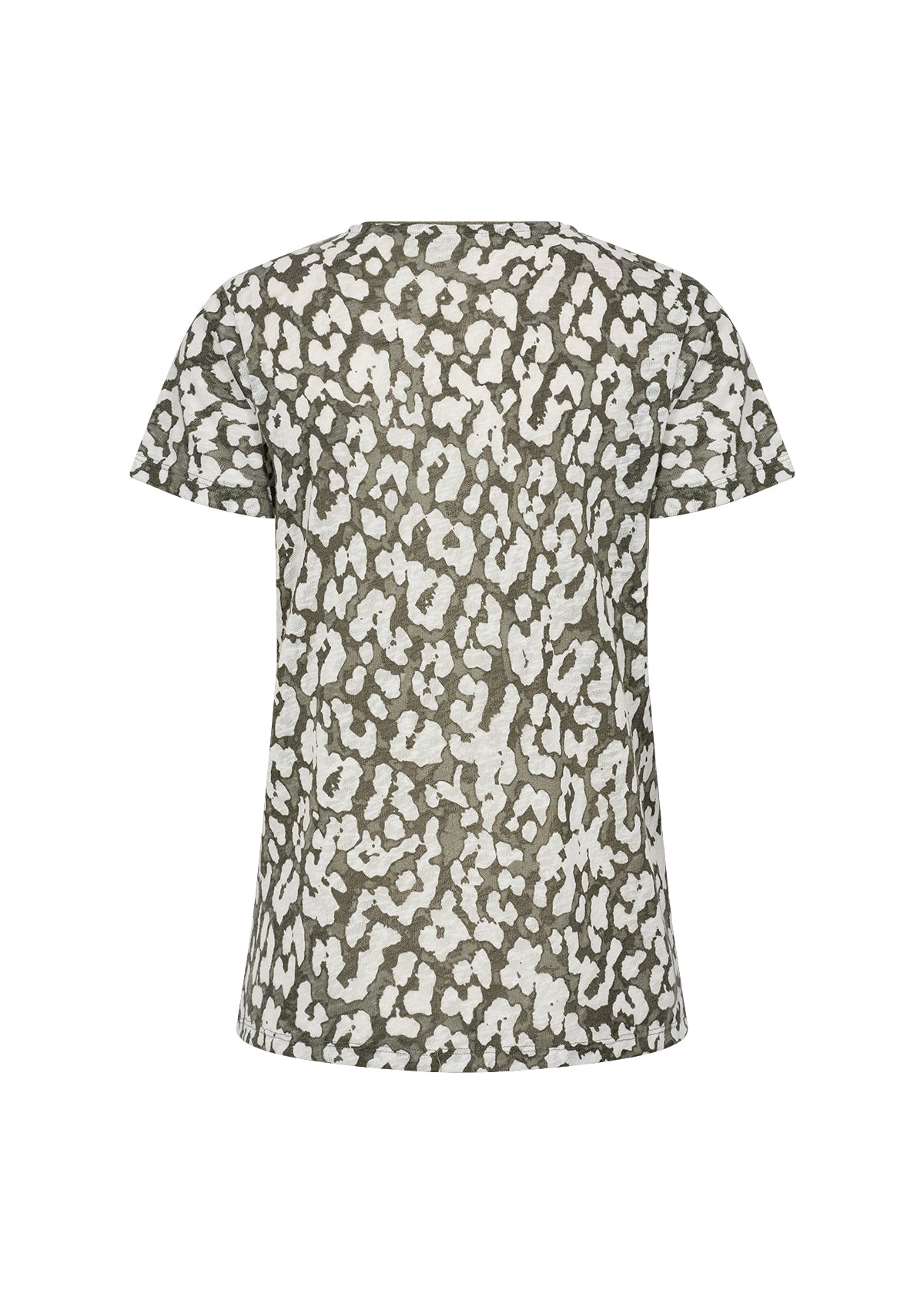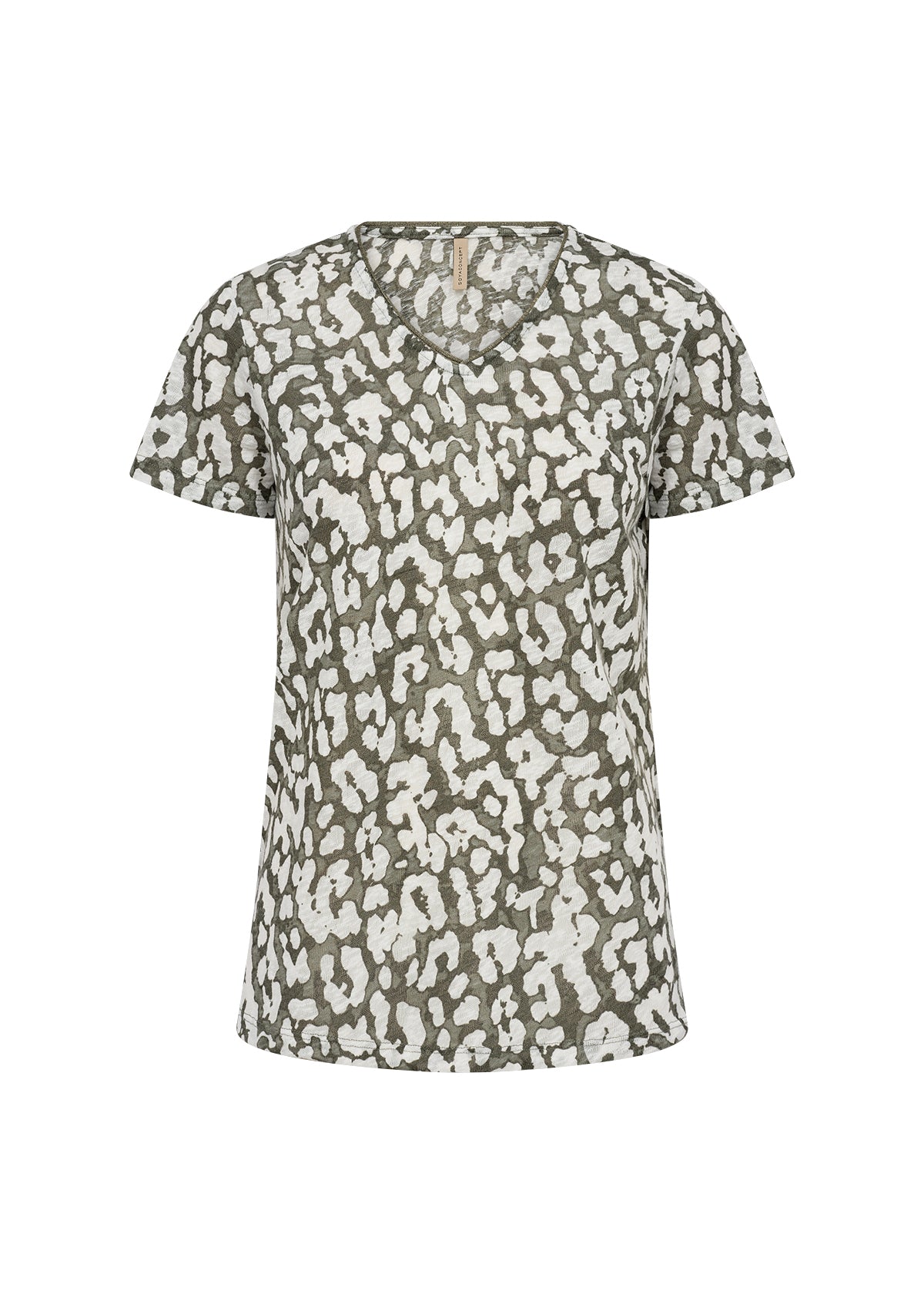 SC-ARETHA 39 is a light short-sleeved T-shirt made from 100% Recycled polyester. This top features a V-neckline and an animal print. Pair it with casual trousers or skirts for a day-to-day look.