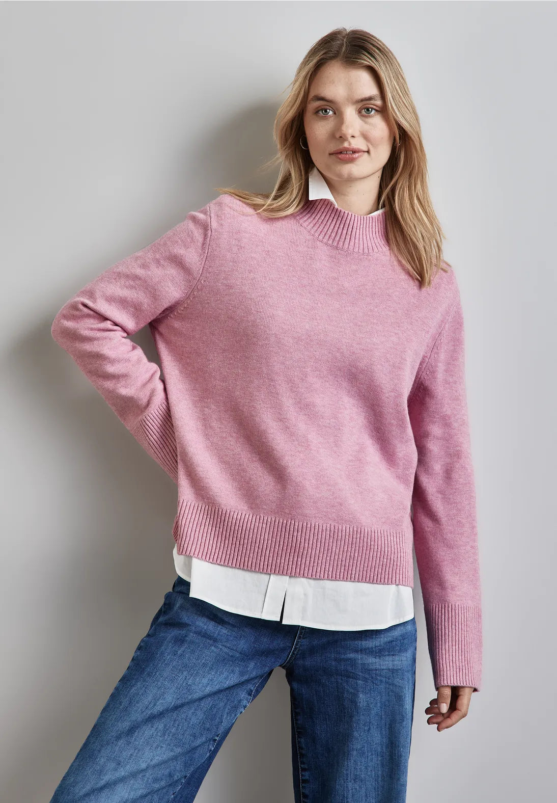 The Street One stand-up collar sweater for women is perfect for cool days. The women's sweater has long sleeves and a stand-up collar. The pleasant material mix ensures high wearing comfort.