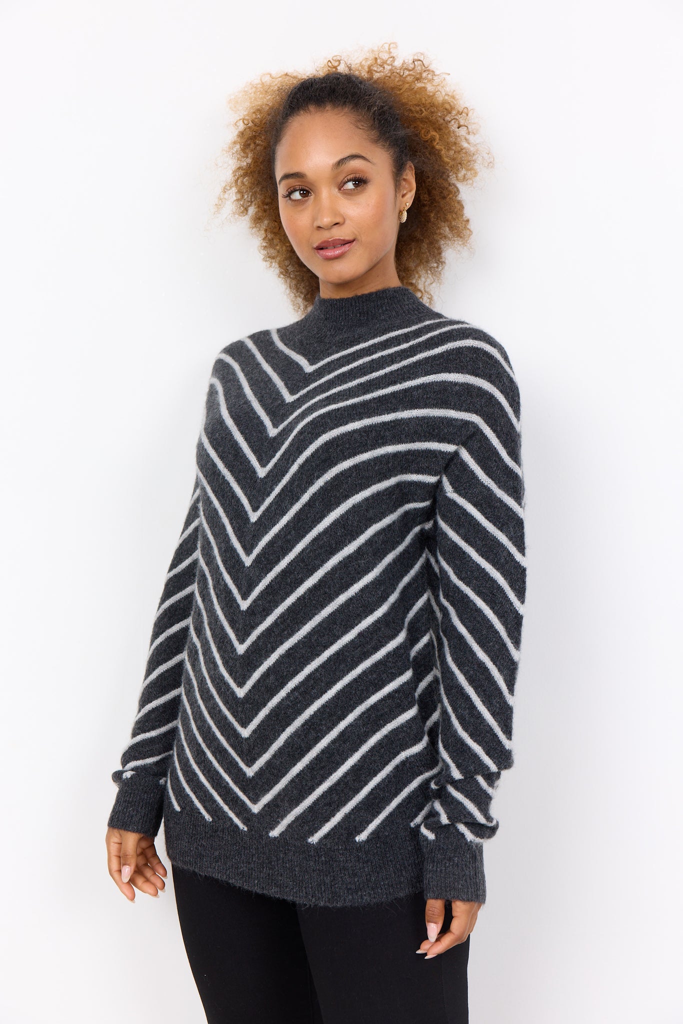 SC-Nessie stripe 53 is a feminine pullover made from a soft blend of ecrylic, wool, polyester and elastane. The pullover has a high neckline, long sleeves, a regular fit and a nice striped pattern. Style this cute pullover with a denim skirt and some booties for a feminine look.