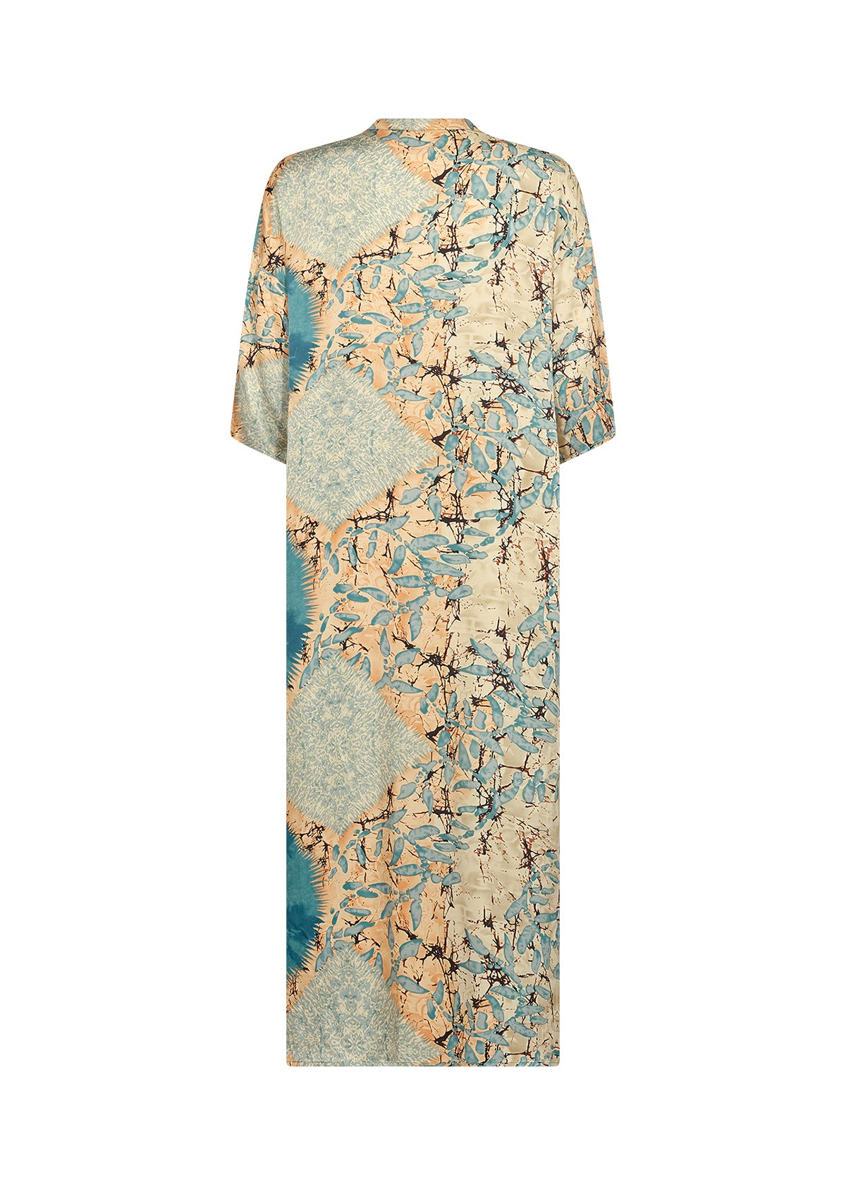 Description EN: SC-Emly 3 is a feminine dress made from a lovely blend of viscose and LENZING™ ECOVERO™ viscose. The dress has a feminine split-neck, a placket, 3/4 sleeves, a loose fit and a lovely print. Style this lovely dress with some heels and your favourite accessories for a formal look.