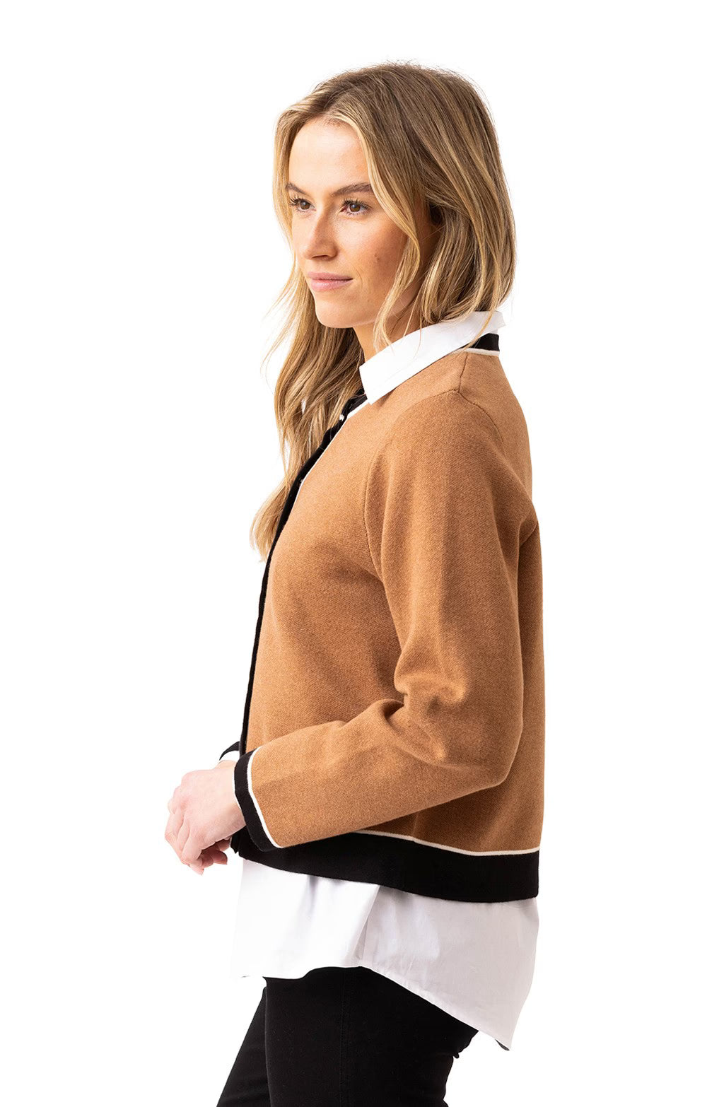 This cardigan from Marble is an elegance piece. In a trendy brown colour, this piece will make any outfit look up to date and modern. It features long sleeves and hidden popper buttons.