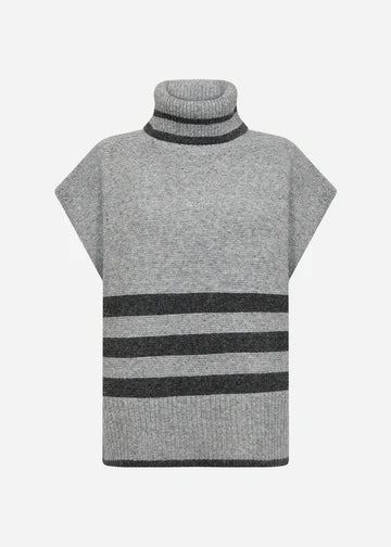 SC-VIF 1 waistcoat is made from 65% polyester, 13% acrylic, 13% nylon, 6% wool, 3% elastane. It features a high ribbed collar, a textured knit design with stripe pattern and short sleeves. Wear is over a long-sleeve top or under a jacket for added warmth and style.