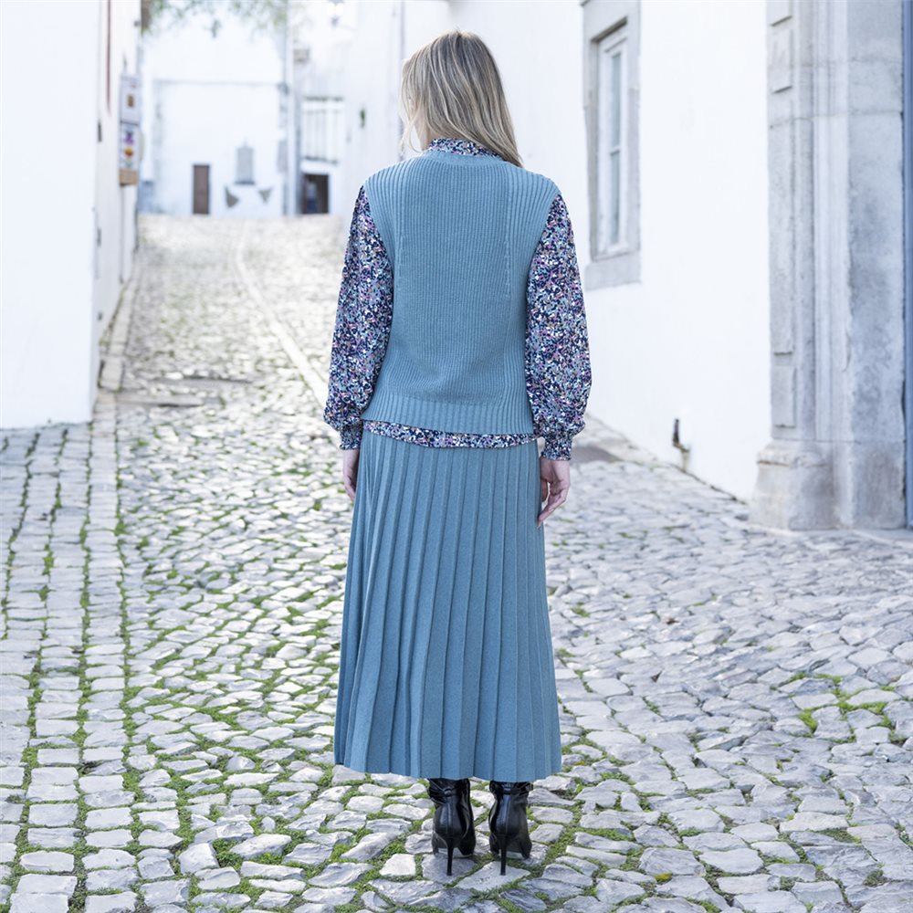 Knitted A-Line Pleated Midi Skirt With Elasticated Waistband Blue - Marble