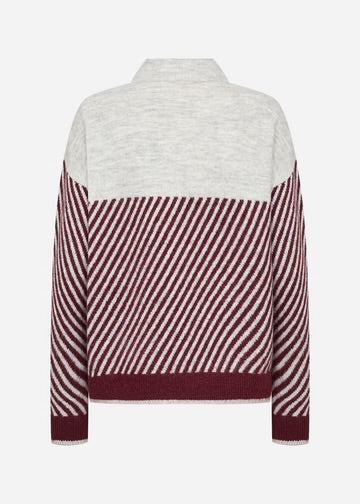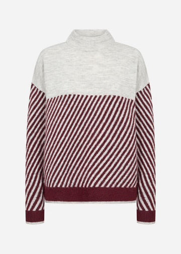 SC-NESSIE STRIPE 71 Pullover is crafted with 49% Acrylic, 26% Wool, 22% Polyester, 3% Elastane. It features a textured stripe pattern and a cozy high neck design for added warmth. Pair it with tailored trousers or a simple skirt for an easygoing look.